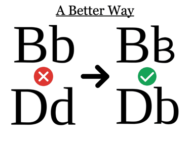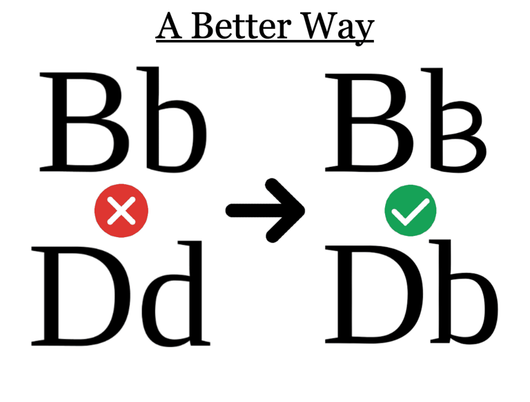 This more natural and logical approach to the lower cases of D and B will not only make learning to write and read English easier for students with Dyslexia and Dysgraphia but for all students. This approach is so intuitive and easy, we believe even long time users of the old way will adjust quickly.